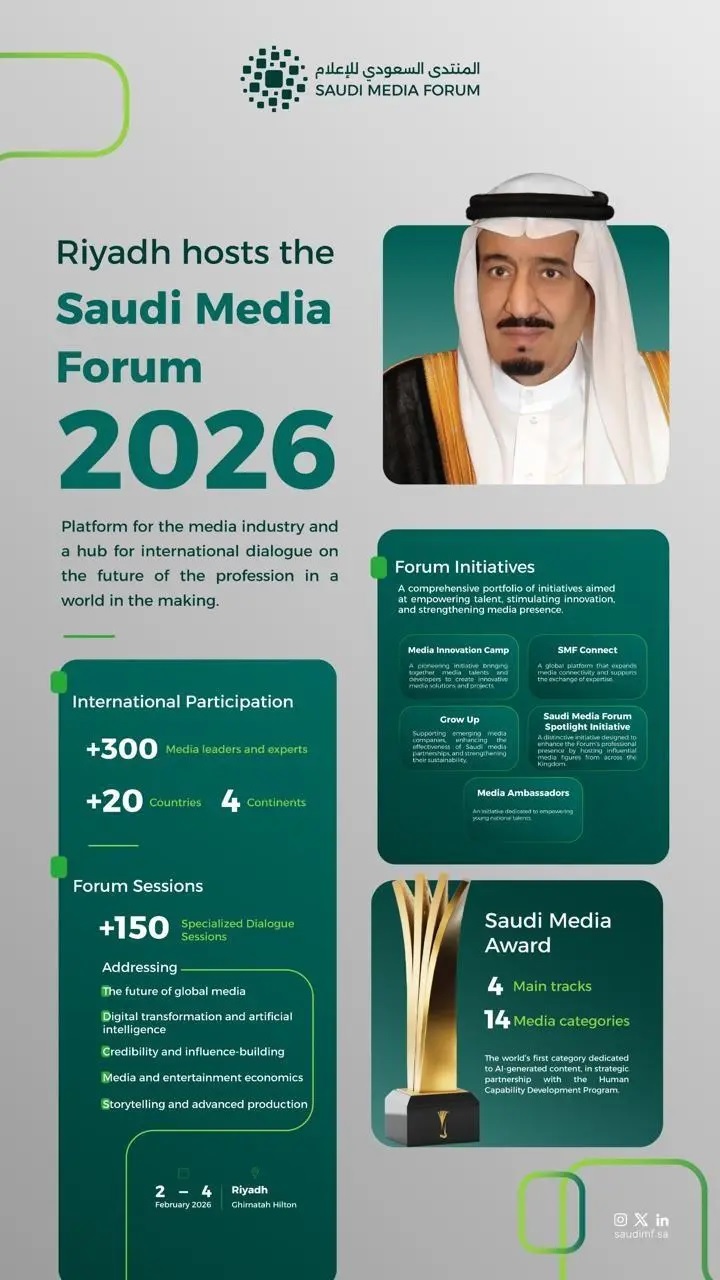 Closely linked to Vision 2030, the forum serves as one of the Kingdom’s soft-power tools, showcasing the media transformation achieved through enabling policies and regulatory development. This year’s edition carries particular significance as it coincides with the 10th anniversary of Vision 2030, reflecting national progress and the engagement of participants with the Kingdom’s ambitious transformation agenda.