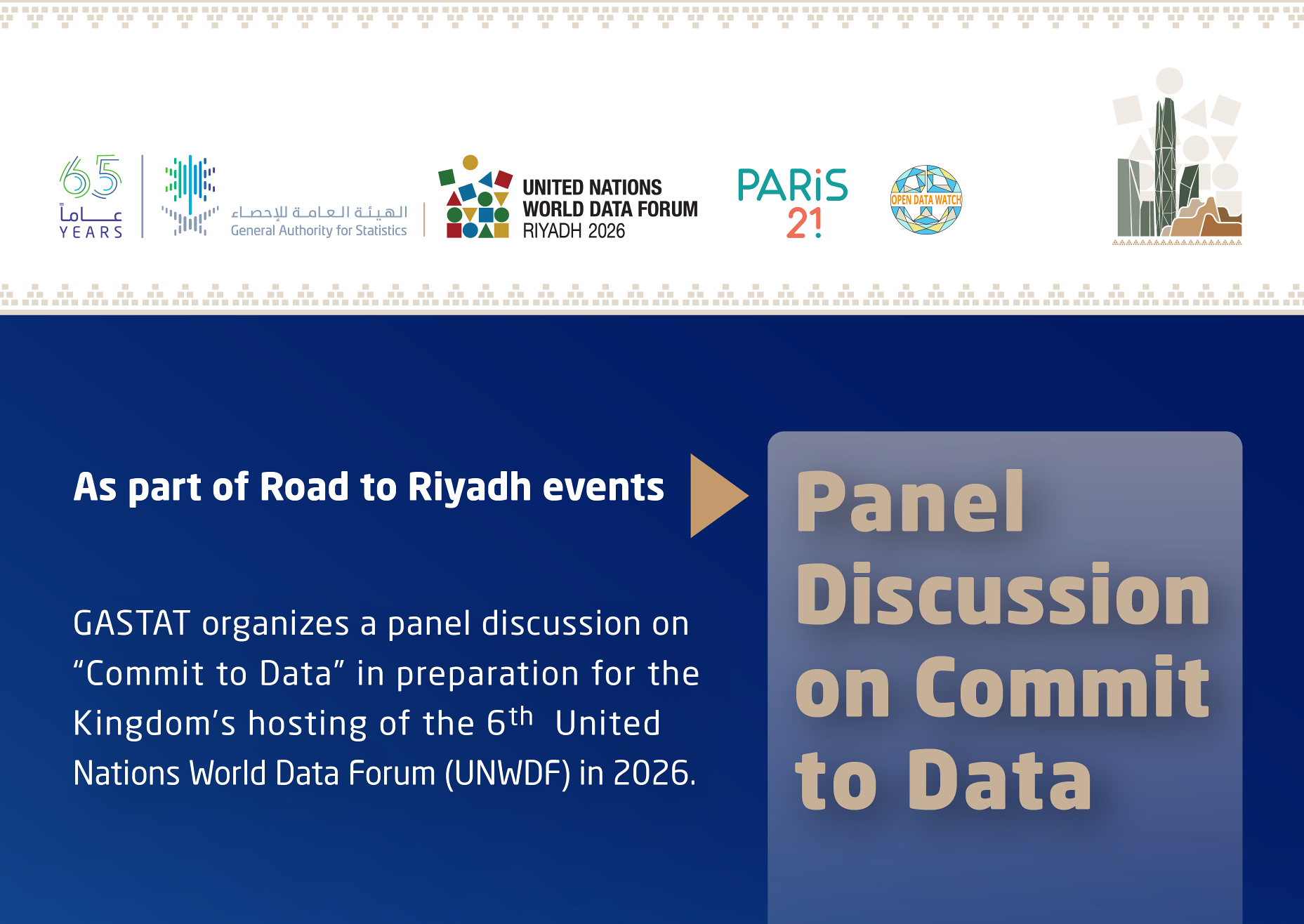 The General Authority for Statistics (GASTAT), in collaboration with Open Data Watch and PARIS21, will co-organize a virtual panel discussion on Commit to Data on Tuesday, 20 January 2026, as part of Road to Riyadh events. It aims to strengthen international and cross-sector partnerships to support the development of resilient and sustainable data systems, promote sustainable financing to drive innovation across the statistical ecosystem, enhance capacity-building efforts within national statistical offices through skills development and knowledge exchange, and showcase the Commit to Data initiative.