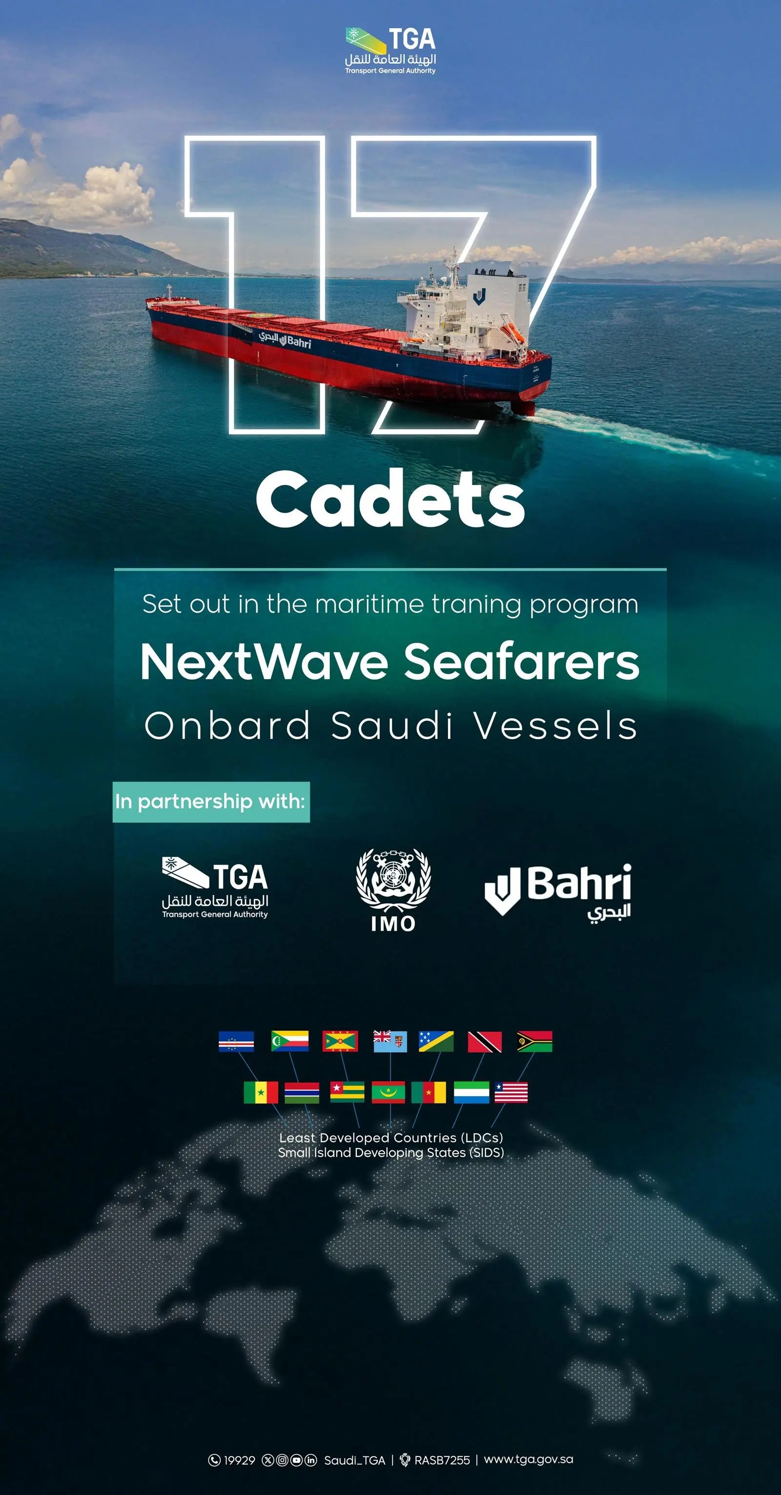 The Transport General Authority (TGA), in cooperation with the International Maritime Organization (IMO) and Bahri, has launched the pilot program “NextWave Seafarers (NWS),” running from 2025 to 2026, to prepare a new generation of highly skilled maritime professionals capable of leading the future of the global maritime transport industry.