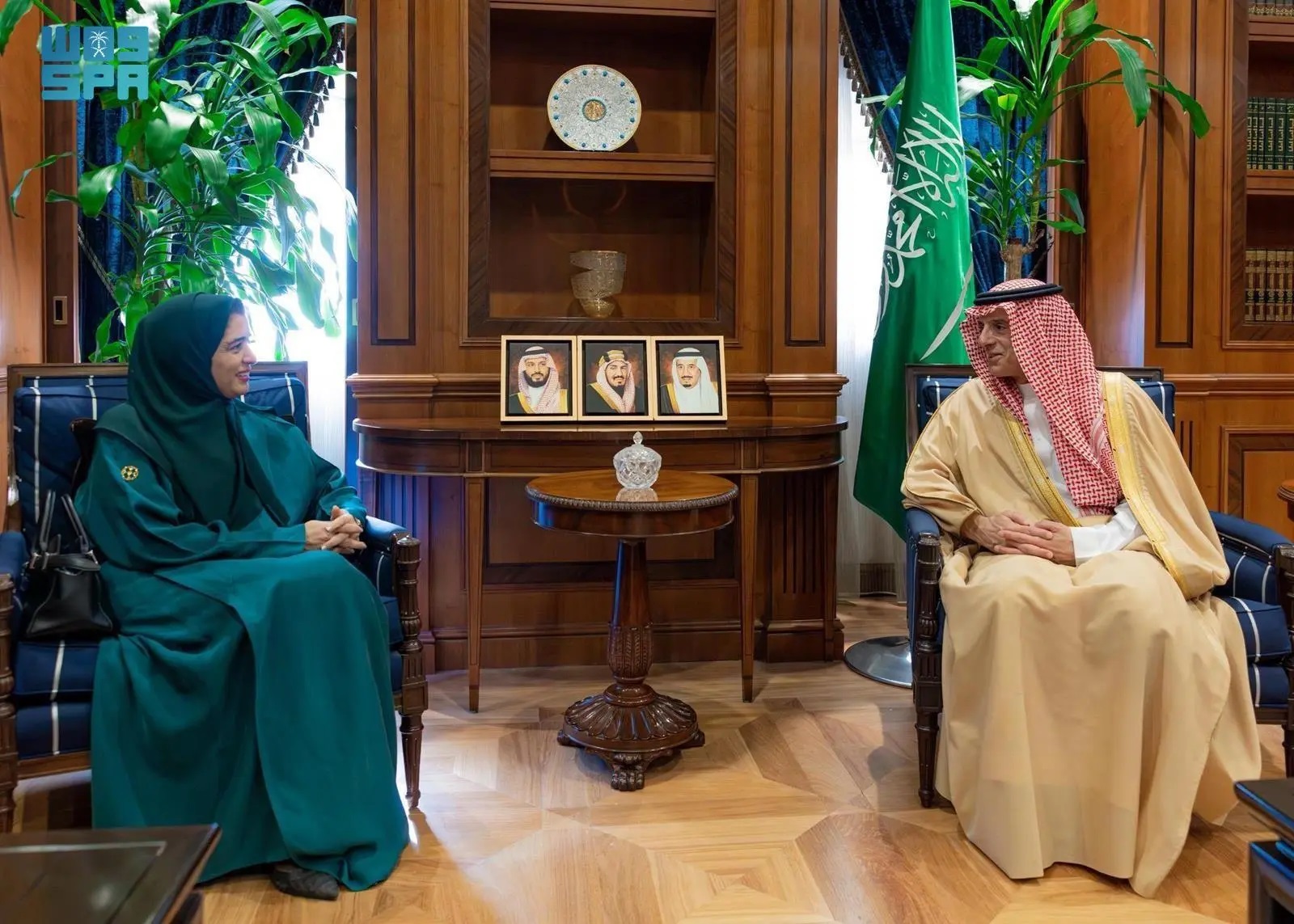 Minister of State for Foreign Affairs, Cabinet Member, and Climate Envoy Adel Al-Jubeir received in Riyadh Regional Director of the World Health Organization (WHO) for the Eastern Mediterranean Hanan Balkhy.