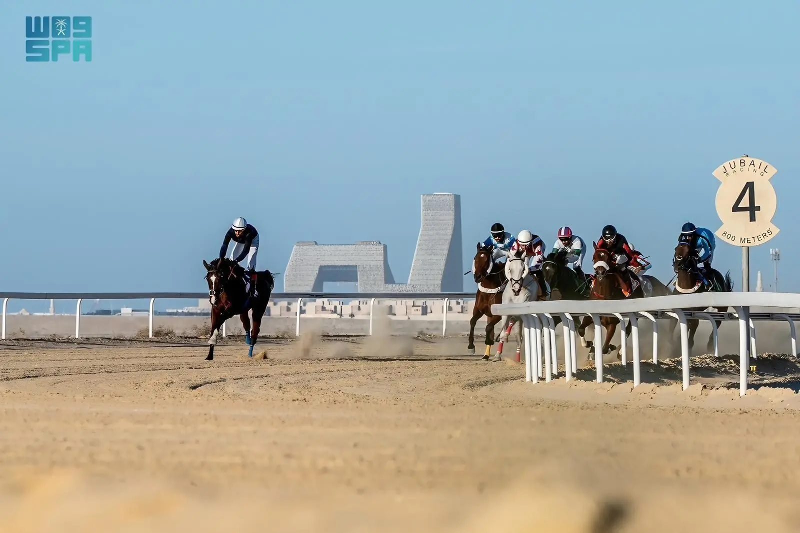 The Jubail Horse Track held the eighth race of its current season yesterday at its grounds in Jubail Industrial City, featuring a competitive lineup of five heats, each contested over a distance of 1,600 meters.